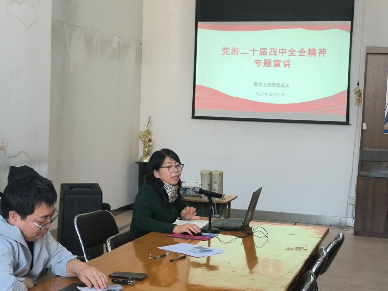 12月11日,体育工作部召开学习贯彻党的二十届四中全会精神宣讲报告会。体育工作部党总支书记王丽焕作宣讲报告。