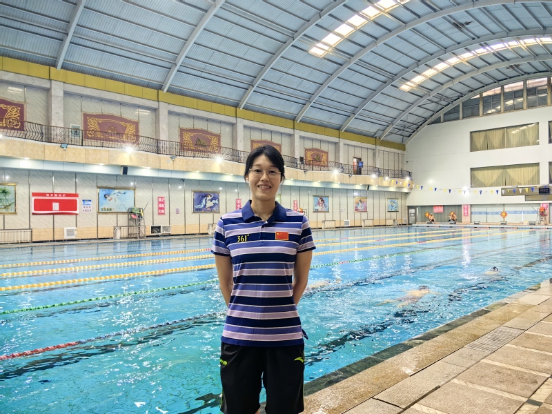 比赛中,庞玟贤老师展现出卓越的专业能力与教学风采。在录像课与课程设计环节,她坚持以学生为中心,紧密结合游泳项目特点和大学生身心发展规律,精心设计教学流程,注重教学方法创新与课堂互动实效,其清晰的授课逻辑、规范的教学组织与生动的课堂呈现赢得了评委的高度评价。在理论知识考试中,她对体育教学理论、运动训练学、运动生理学等专业知识掌握熟练、对答从容,体现了扎实的学科素养。在专项技能展示中,其游泳技术动作规范流畅、运用灵活自如,彰显出深厚的专业功底。在800米体能测试中,她以坚韧的意志和良好的身体素质顺利完成考核,展现出体育教师以身作则的职业风范。